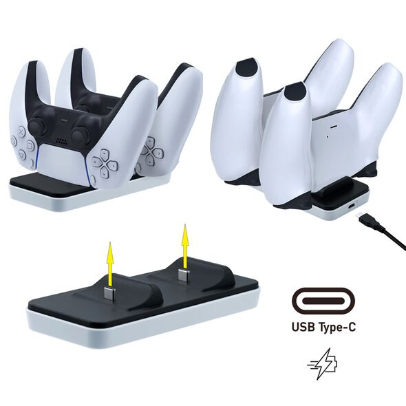Διπλή Βάση Φόρτισης DualSense Χειριστηρίων PS5, USB Type C, με Αποσπώμενα Type C Βύσματα, Μικρή & Φορητή, Dobe Dual Controller Charging Dock, TP-0504