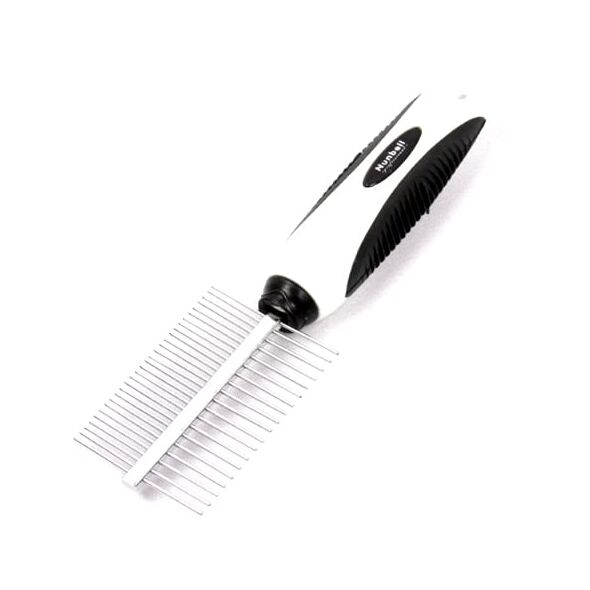 Αυτή η διπλή χτένα για το τρίχωμα των κατοικίδιων με μεταλλικά δοντάκια απομακρύνει ψύλλους, βρωμιές και νεκρό τρίχωμα, καθώς επίσης περιποιείται το σκυλάκι σας για να δείχνει προσεγμένο και όμορφο! Με ένα χτένισμα απομακρύνει τους ψύλλους, το περιττό τρίχωμα και τις βρομιές, κάνοντας παράλληλα ένα ελαφρύ μασάζ. Αποτέλεσμα: το τρίχωμα θα είναι λαμπερό και υγιές!