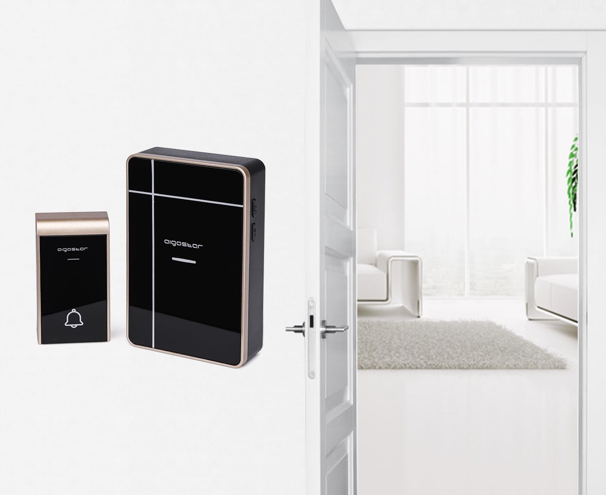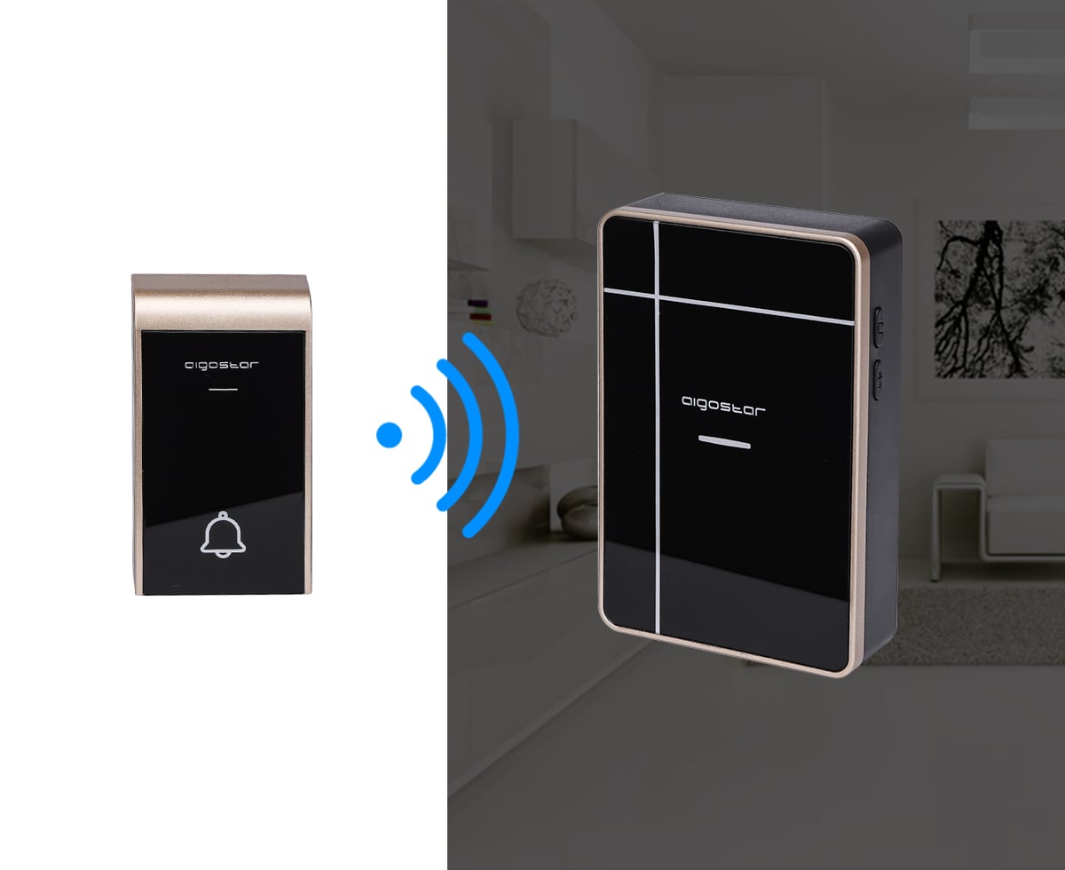 Διπλό Ασύρματο Κουδούνι Μπαταρίας Μακράς Εμβέλειας 150μ με 36 Μελωδίες - Aigostar Μαύρο