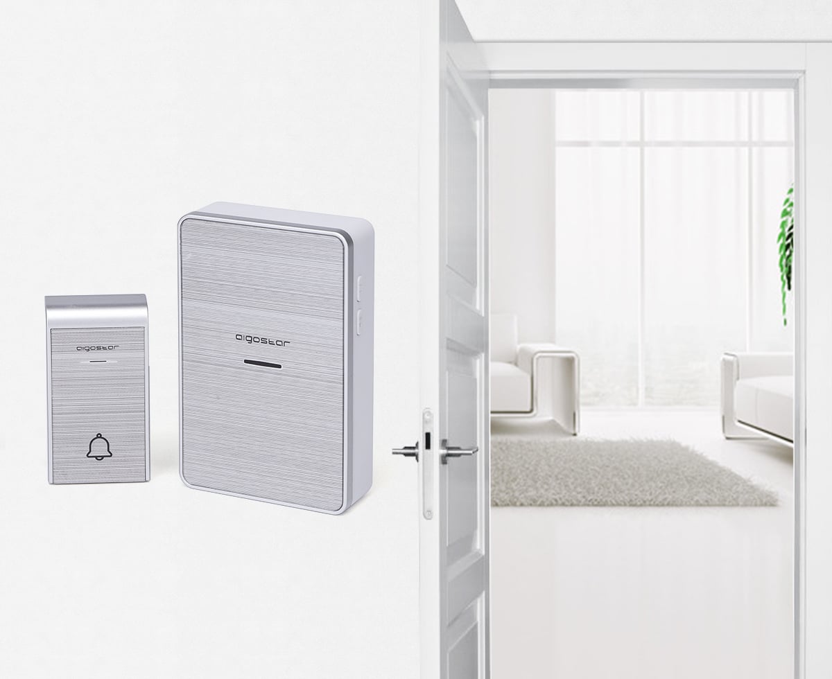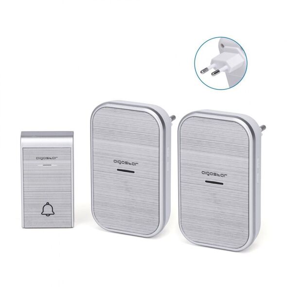 Διπλό Ασύρματο Κουδούνι Ρεύματος Μακράς Εμβέλειας 150μ με 36 Μελωδίες - Aigostar Ασημί