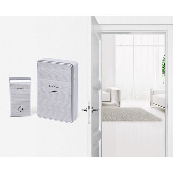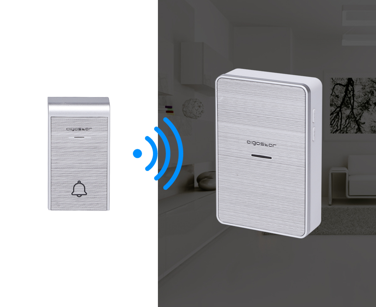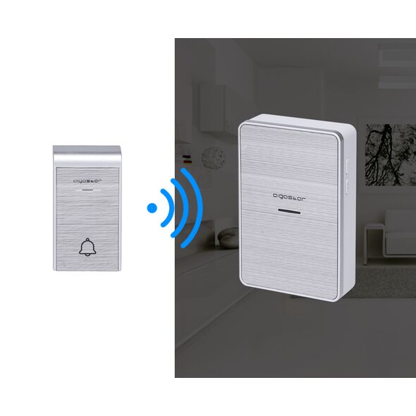 Διπλό Ασύρματο Κουδούνι Ρεύματος Μακράς Εμβέλειας 150μ με 36 Μελωδίες - Aigostar Ασημί