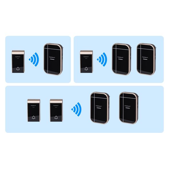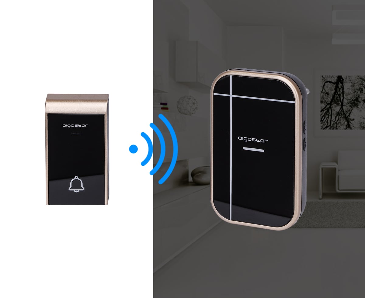 Διπλό Ασύρματο Κουδούνι Ρεύματος Μακράς Εμβέλειας 150μ με 36 Μελωδίες - Aigostar Μαύρο/Χρυσό
