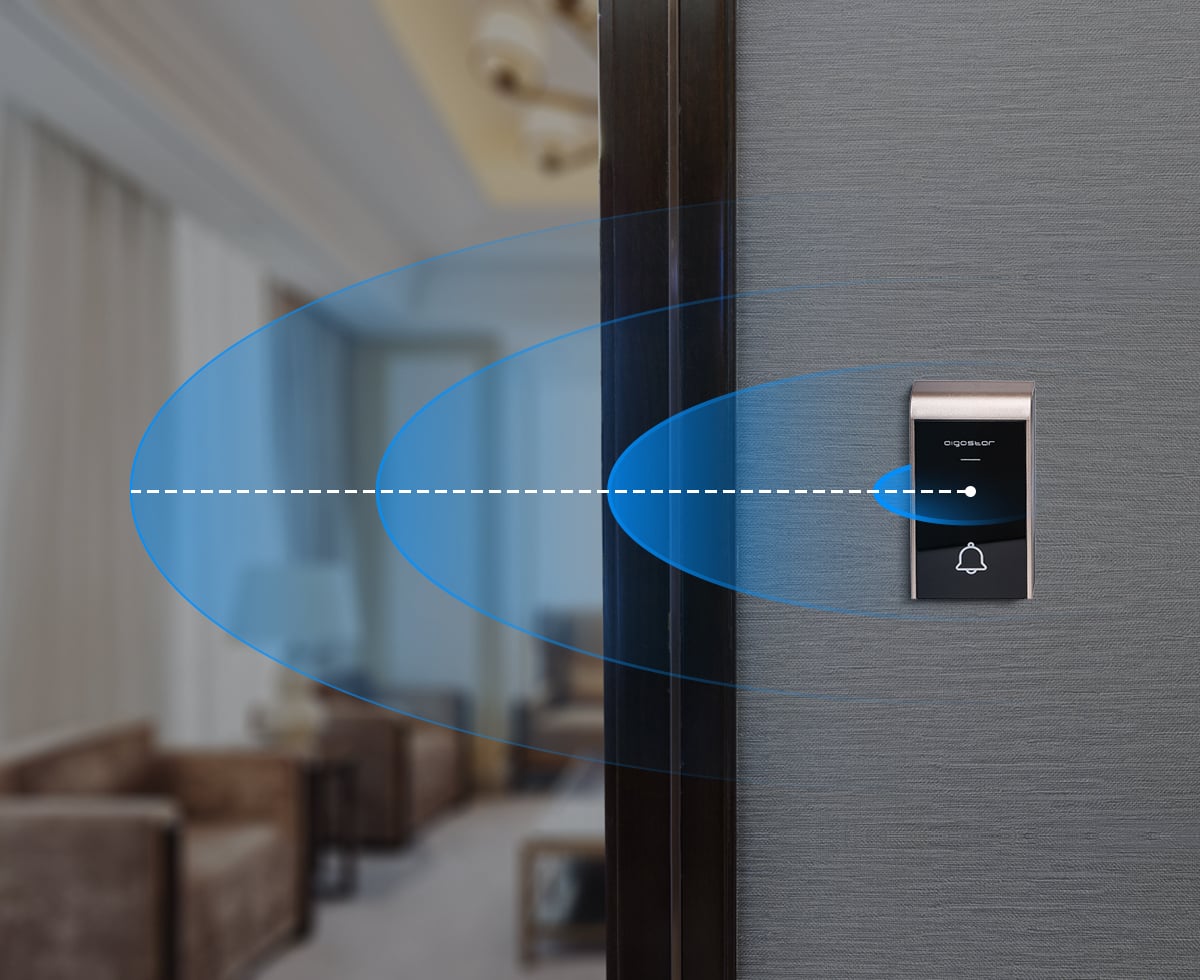 Ο δέκτης μπορεί να τοποθετηθεί όπου βρίσκεστε μέχρι και 50 μέτρα μακρυά, έτσι ώστε αν είστε μακρυά από την είσοδο σας,στην αυλή σας ή κάνετε οποιαδήποτε δραστηριότητα θα ακούσετε την ηχητική μουσική ειδοποίηση.