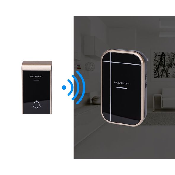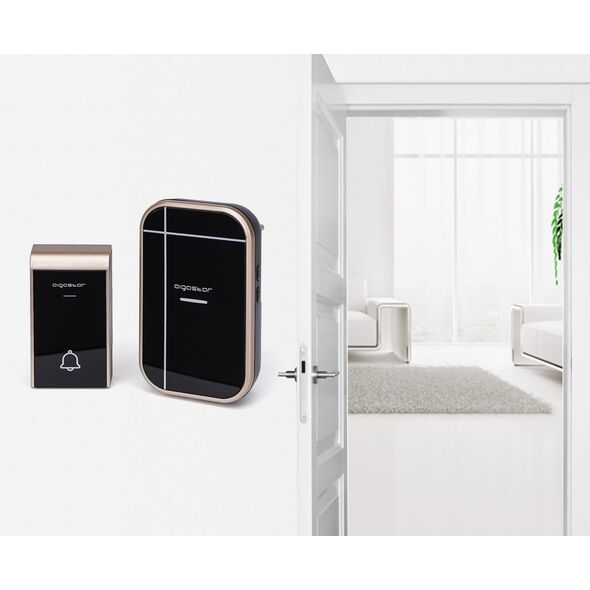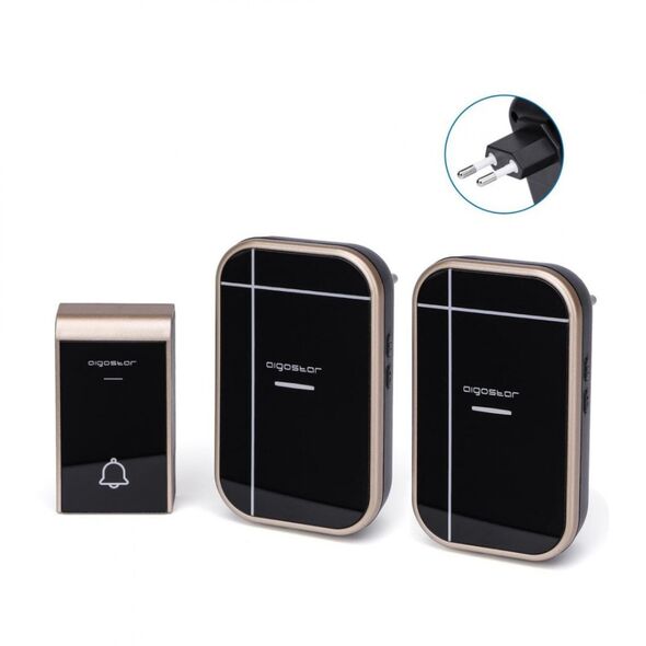 Διπλό Ασύρματο Κουδούνι Ρεύματος Μακράς Εμβέλειας 150μ με 36 Μελωδίες - Aigostar Μαύρο/Χρυσό
