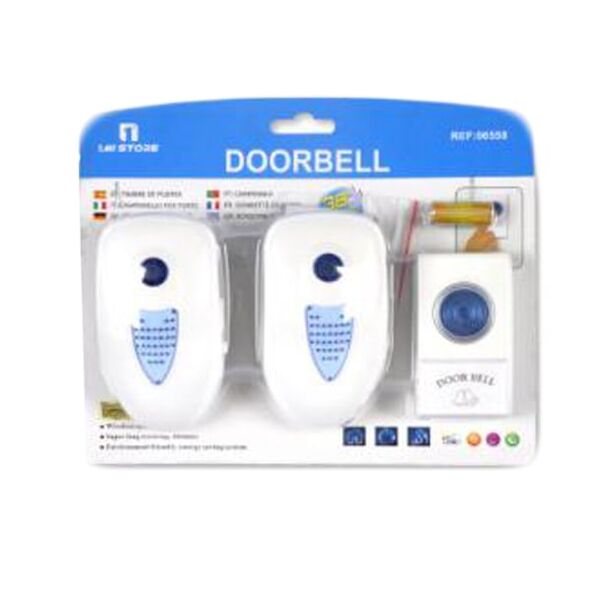 Ασύρματο κουδούνι με 2 δέκτες εμβέλειας έως 50m με 36 ευχάριστες μελωδίες για κάθε δέκτη ξεχωριστά και φωτεινή ένδειξη.