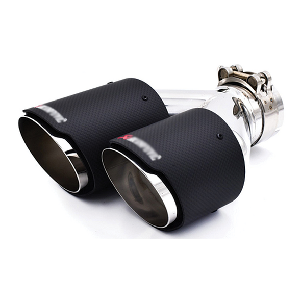 Διπλό Τελικό - Μπούκα εξάτμισης αυτοκινήτου Universal τύπου akrapovic από ατσάλι 60-63mm HW-0046 σε μαύρο χρώμα.