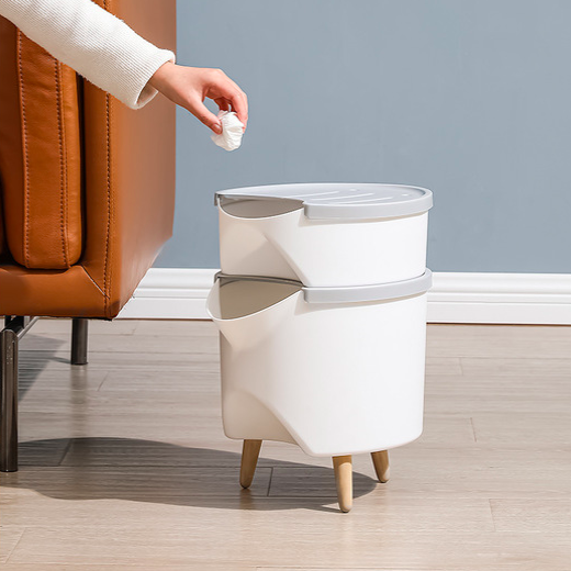 Τοποθετείτε τον μικρό κάδο, επάνω στον μεγαλύτερο, και αυτοί διαθέτοντας δύο διαφορετικές εσοχές σας βοηθούν να ξεχωρίσετε τα ανακυκλώσιμα σκουπίδια σας.