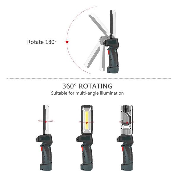 - Επαναφορτιζόμενος περιστρεφόμενος μαγνητικό φακός - φωτιστικό εργασίας