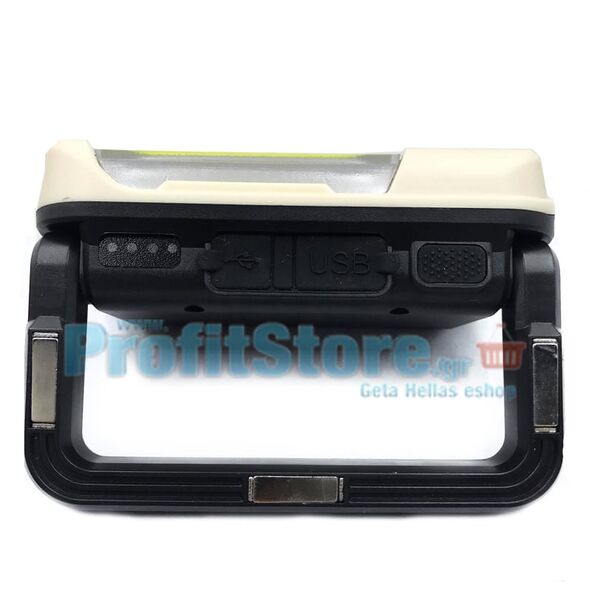 Διπλός Μίνι Επαναφορτιζόμενος Φακός Εργασίας COB LED με Διακόπτη Dimmer, 4 Λειτουργίες Φωτισμού, Μαγνήτη & Βάση Στήριξης - USB Working Lamp