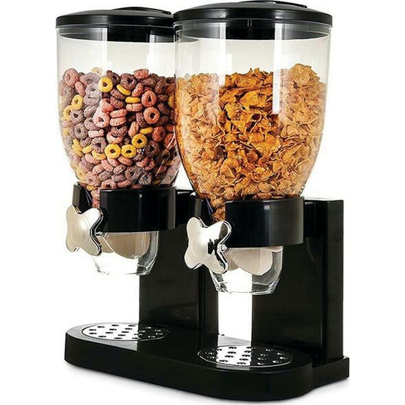 Διπλός Χειροκίνητος Διανεμητής Δημητριακών με Δοχείο Αποθήκευσης 500ml x 2 για Ξηρές Τροφές και Δημητριακά – Μαύρο