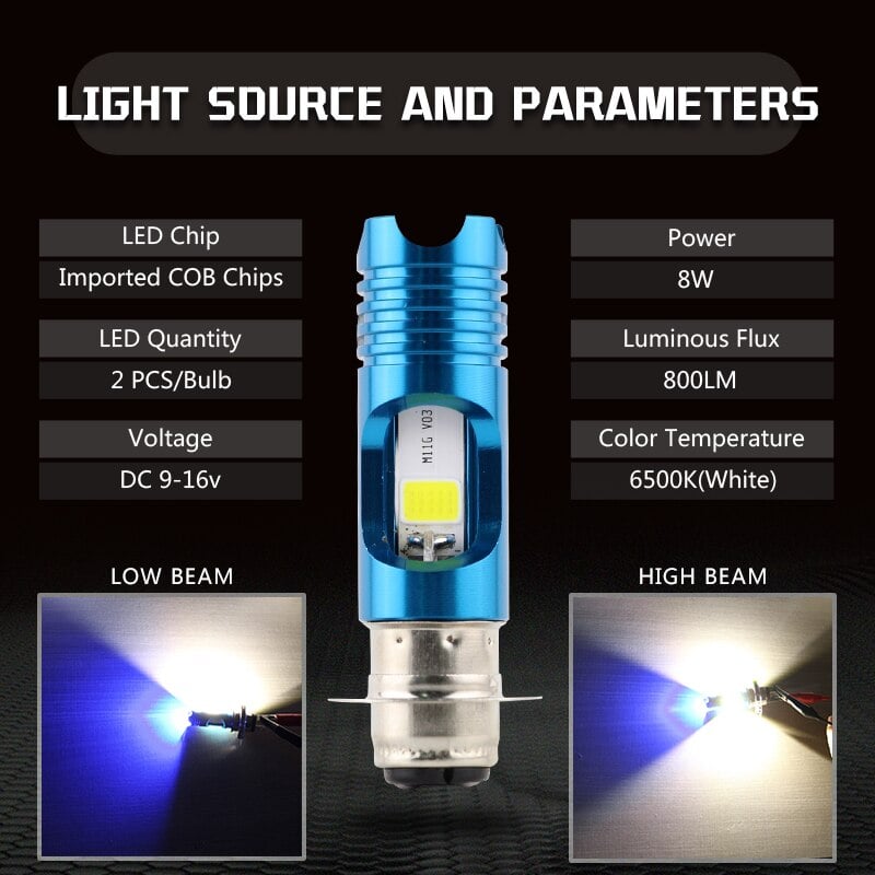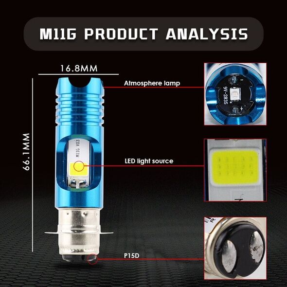 Αναβαθμίστε τον φωτισμό και εκτινάξτε το στυλ της μηχανής ή του αυτοκινήτου σας με τον υψηλής ποιότητας 2ης γενιάς λαμπτήρα LED με μπλε φωτισμό. Εξελιγμένος λαμπτήρας P15D H6 και διαθέτει δύο σκάλες φωτισμού High & Low.