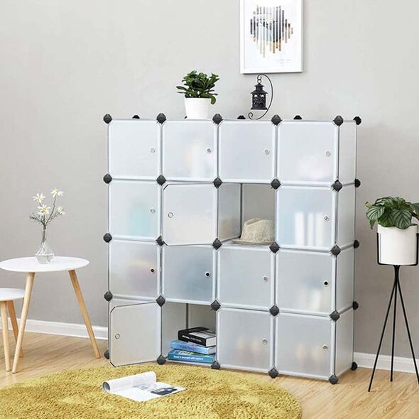 Είναι εξοπλισμένο με 8 κύβους με ημιδιαφανείς πόρτες όπου μπορείτε να αποθηκεύσετε ρούχα, βιβλία, παπούτσια παιχνίδια κ.α.