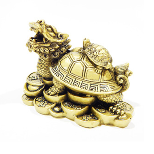 Η Δρακοχελώνα με ένα μωρό χελώνας στην πλάτη της, στέκεται πάνω σε ένα σωρό από νομίσματα και αντιπροσωπεύει ένα νέο επιχειρηματικό ξεκίνημα με προοπτικές. Οι συμβολικές σημασίες των ζώων, δράκος (τύχη), Χελώνα (μεγάλη διάρκεια ζωής), χελώνα μωρό (νέα ξεκινήματα, γονιμότητα ή εξαιρετική τύχη) σε συνδυασμό με τα νομίσματα, συμβολίζουν τα χρήματα που μπορούν να αποκτηθούν. Επειδή είναι μια ιδανική συγχώνευση των ποιοτήτων τόσο του δράκου όσο και της χελώνας (σταθερότητα και σταθερότητα), είναι μια φανταστική φιγούρα που υποκινεί την τύχη της σταδιοδρομίας και την ανάπτυξη της δουλειάς, νικώντας τον ανταγωνισμό και αναζωογονώντας τη φήμη. Στην αρχαιότητα, η χελώνα του δράκου χρησιμοποιήθηκε από τον αυτοκράτορα στο παλάτι του για να προσφέρει μακροζωία και ενίσχυση της επιρροής του και ευημερία.