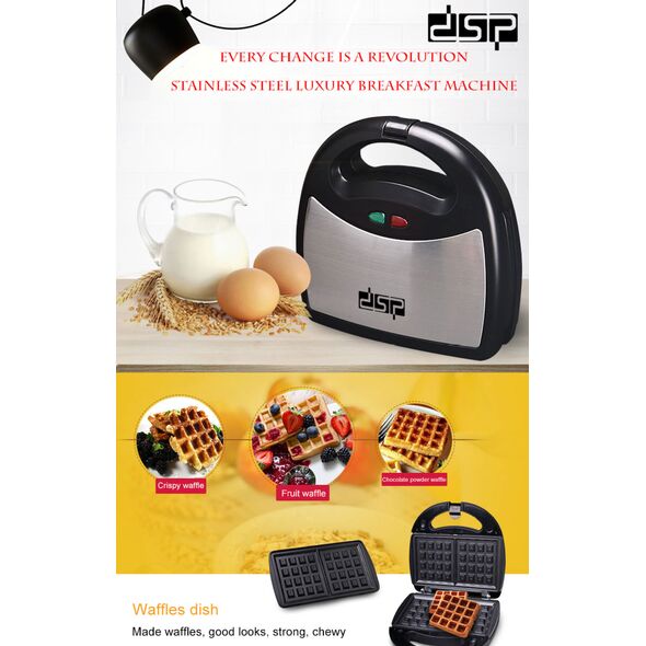 DSP® Τοστιέρα 3 - 1 με Αποσπώμενες Αντικολλητικές Πλάκες για Βάφλες & Γκριλ 750W - Sandwich Maker - Inox