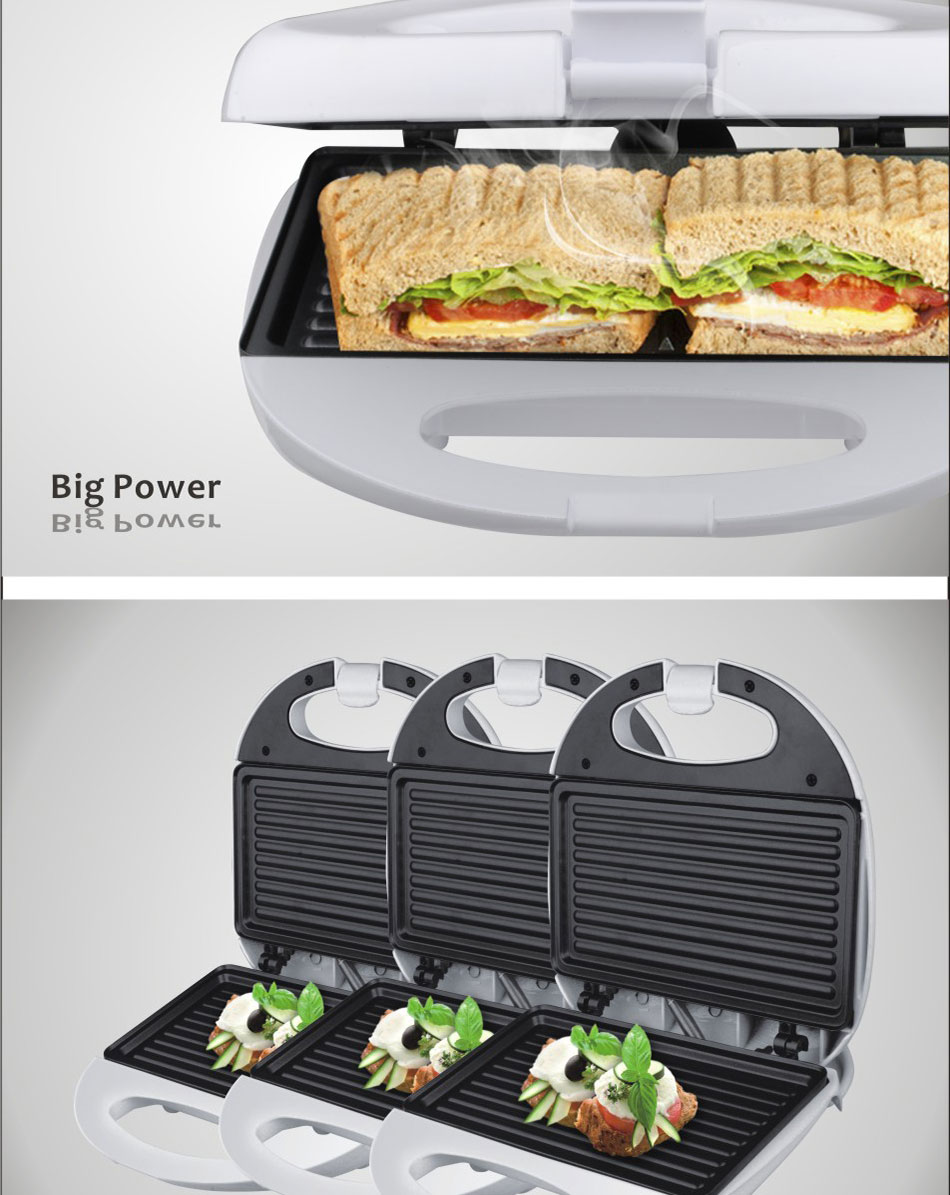 Οι πλάκες της έχουν ραβδώσεις οπότε τα φαγητά δε συγκρατούν πολλά υγρά όπως λάδια και λίπη, έτσι το ψήσιμο γίνεται πιο υγιεινό. Ιδανική για να ψήσετε τοστ, λουκάνικα, κοτόπουλο, κρέας ή λαχανικά αφού το ιδιαίτερο χαρακτηριστικό της είναι ότι μπορεί να ανοίξει οριζόντια 180° και να μετατραπεί σε Γκριλίερα.