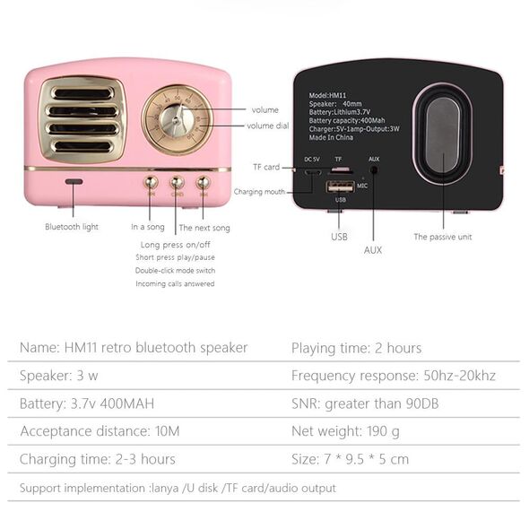 Το συγκεκριμένο ρετρό ραδιόφωνο USB MP3 λειτουργεί είτε με επαναφορτιζόμενη μπαταρία η οποία φορτίζει με το καλώδιο που περιλαμβάνεται.