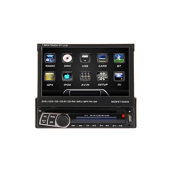 Το απόλυτο DVD πολύ-σύστημα για το ταμπλό του αυτοκινήτου καθώς διαθέτει αποσπώμενο MP3 Player και πτυσσόμενη οθόνη αφής 7 ιντσών TFT 1DIN με λειτουργίες Bluetooth, RDS. Εξαιρετικά χαρακτηριστικά καθώς η οθόνη "κρύβεται" και το MP3 player μπορεί να βγει και να αποθηκευτεί, ώστε να μην γίνονται στόχος σε επιδέξιους κλέφτες!