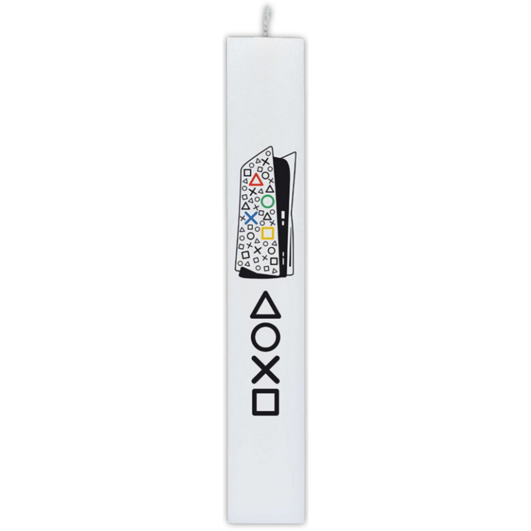 Μια εφηβική πλακέ λαμπάδα σε λευκή απόχρωση, διακοσμημένη με απευθείας εκτύπωση υψηλής ποιότητας εμπνευσμένη από τον κόσμο του Playstation, ιδανική για όσους αγαπούν το gaming.