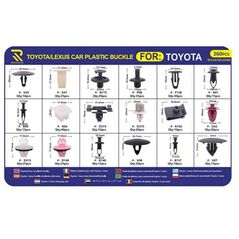 Κουμπώματα - Κλίπς Ταπετσαρίας Αυτοκινήτου 360τμχ για TOYOTA.Με 18 σχέδια , κατάλληλα για εσωτερικές επενδύσεις,μοκέτες , ποδιές,προφυλακτήρες,ταπετσαρίες κλπ