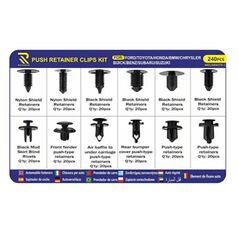 Κουμπώματα - Κλίπς Ταπετσαρίας Αυτοκινήτου 240τμχ για Ford-Toyota-Honda-Bmw-Chrysler-Buick-Benz-Subaru-Suzuki.Με 12 σχέδια , κατάλληλα για εσωτερικές επενδύσεις,μοκέτες , ποδιές,προφυλακτήρες,ταπετσαρίες κλπ