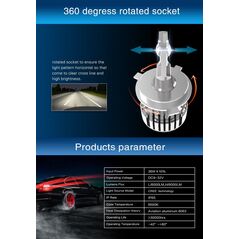 Φωτίστε το δρόμο σας εκθαμφωτικά και υπό την τέλεια γωνία εγκαθιστώντας ένα Ultra White LED kit H4 / 6500Κ, με ρυθμιζόμενη γωνία έως 150 μόιρες, κατανάλωση μόλις 70W και εξαιρετικά μεγάλη συνολική φωτεινότητα 9200LM (2x4600Lm). Σετ H4 με δύο σκάλες φωτισμού (High, Low).