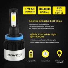 Φωτίστε το δρόμο σας περισσότερο εγκαθιστώντας ένα σετ λαμπτήρες LED πορείας H11 / 6500Κ, με κατανάλωση μόλις 90W και εξαιρετικά μεγάλη φωτεινότητα 12000LM! Φωτίζουν περισσότερο από κοινές λάμπες, αλλά και έχουν μικρή κατανάλωση. Είναι αδιάβροχα και ανθεκτικά στην σκόνη!