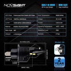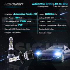 Φώτα δρόμου αυτοκινήτου της NovSight®, χωρίς περιττά μέρη, ballast και καλώδια. Σετ λαμπτήρες LED πορείας H4 / 6000Κ, με διπλά LED το καθένα, κατανάλωση μόλις 70W, εξαιρετικά μεγάλη φωτεινότητα 12.000LM και συνεπώς μεγαλύτερη ορατότητα.
