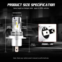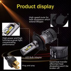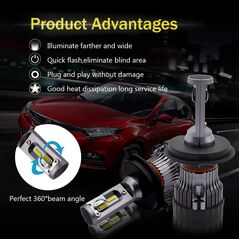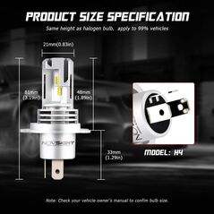 Φώτα δρόμου αυτοκινήτου της NovSight®, χωρίς περιττά μέρη, ballast και καλώδια. Σετ λαμπτήρες LED πορείας H4 / 6000Κ, με διπλά LED το καθένα, κατανάλωση μόλις 40W, εξαιρετικά μεγάλη φωτεινότητα 12.000LM και συνεπώς μεγαλύτερη ορατότητα.