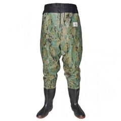 Αδιάβροχες αντιολισθητικές γαλότσες ψαρέματος με ενσωματωμένο παντελόνι παραλλαγής από ανθεκτικό PVC. Προσφέρουν πλήρη προστασία σε νερό και λάσπη, άνετη εφαρμογή με κορδόνι μέσης και ιδανική χρήση για ψάρεμα και υπαίθριες δραστηριότητες.
