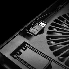 Ντιζαινάτη διάφανη βάση ψύξης - στήριξης με έναν μεγάλο αθόρυβο ανεμιστήρα 160 χιλιοστών και εντυπωσιακό μπλε φωτισμό. Εγγυημένα ομαλή κυκλοφορία του αέρα, απομάκρυνση της ζέστης και αποφυγή της υπερθέρμανσης. Λαστιχένια αντιολισθητικά pads για καλύτερη στήριξη.