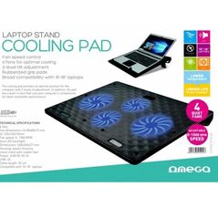 Πρωτοποριακή βάση για φορητό υπολογιστή με την εγγύηση ποιότητας της OMEGA®! Είναι εξοπλισμένο με 4 ανεμιστήρες και σχεδιασμένο έτσι ώστε να ψύχει τέλεια τον υπολογιστή σας για να μην υπερθερμανθεί και πάθει ζημιά! Με ρυθμιζόμενο ύψος και LED φωτισμό!