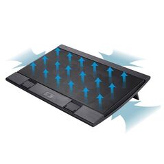 Εύκολα ρυθμιζόμενο και προσαρμόσιμο για να προσφέρει άνετη γωνία θέασης και εργονομική χρήση. Ο ενσωματωμένος ανεμιστήρας 140 χιλιοστών, αεροδυναμικά σχεδιασμένος, παρέχει αθόρυβη και αποτελεσματική ψύξη. Πέντε διαφορετικές ρυθμίσεις ύψους. Για notebooks ή netbooks με μεγέθος 9 έως 17 ίντσες. Διαθέτει δύο θύρες USB.