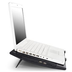 Εύκολα ρυθμιζόμενο και προσαρμόσιμο για να προσφέρει άνετη γωνία θέασης και εργονομική χρήση. Ο ενσωματωμένος ανεμιστήρας 140 χιλιοστών, αεροδυναμικά σχεδιασμένος, παρέχει αθόρυβη και αποτελεσματική ψύξη. Πέντε διαφορετικές ρυθμίσεις ύψους. Για notebooks ή netbooks με μεγέθος 9 έως 17 ίντσες. Διαθέτει δύο θύρες USB.