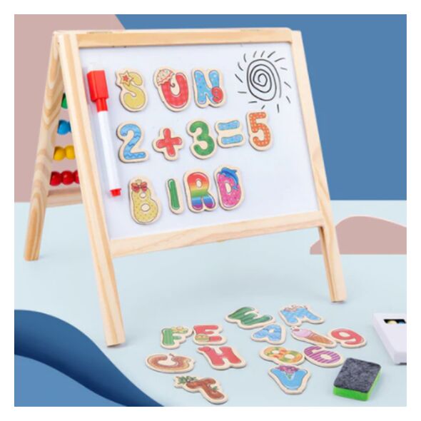 Διαθέτει από την μία πλευρά μαγνητικό λευκό πίνακα για να γράφετε και να σχεδιάζετε με μαρκαδόρους (whiteboard marker) και από την άλλη έναν πολύχρωμο ξύλινο άβακα.