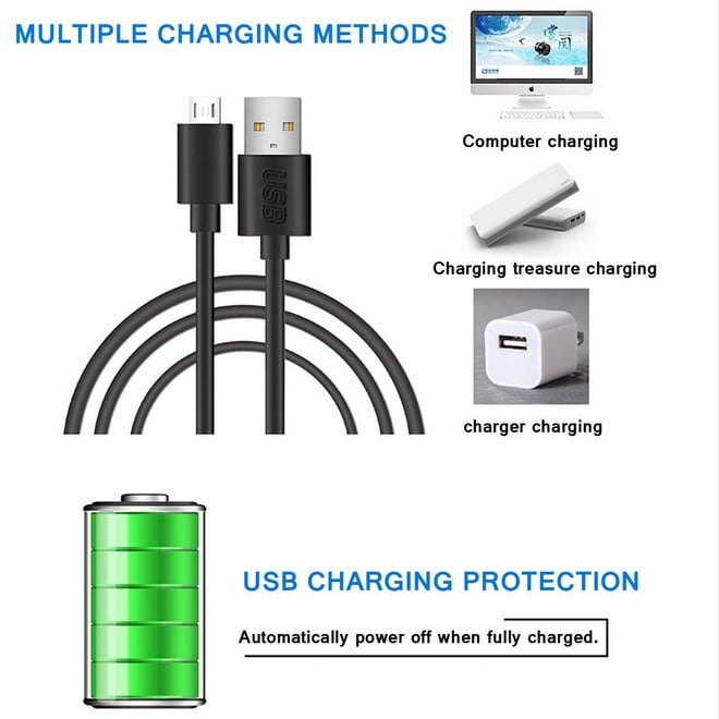 Είναι επαναφορτιζόμενη και φορτίζει μέσω κάθε θύρας USB (περιλαμβάνεται καλώδιο USB)