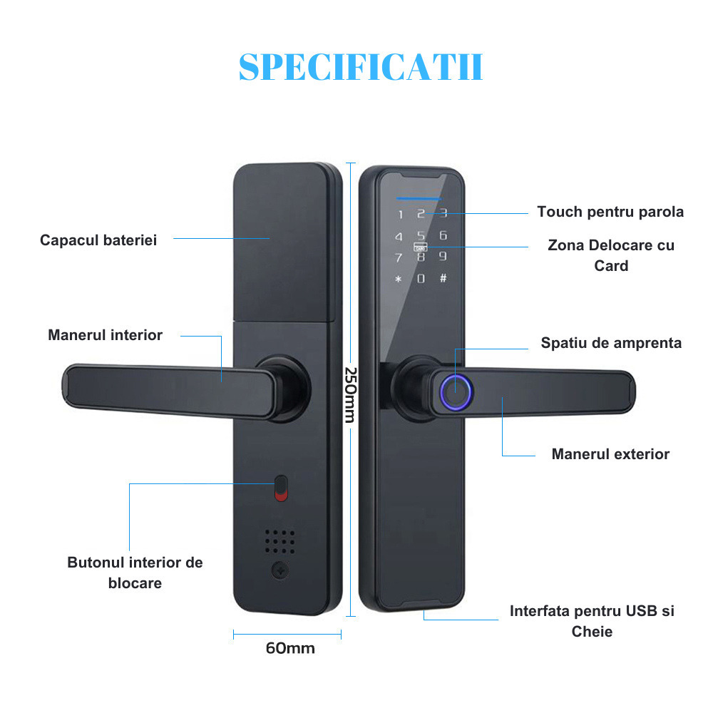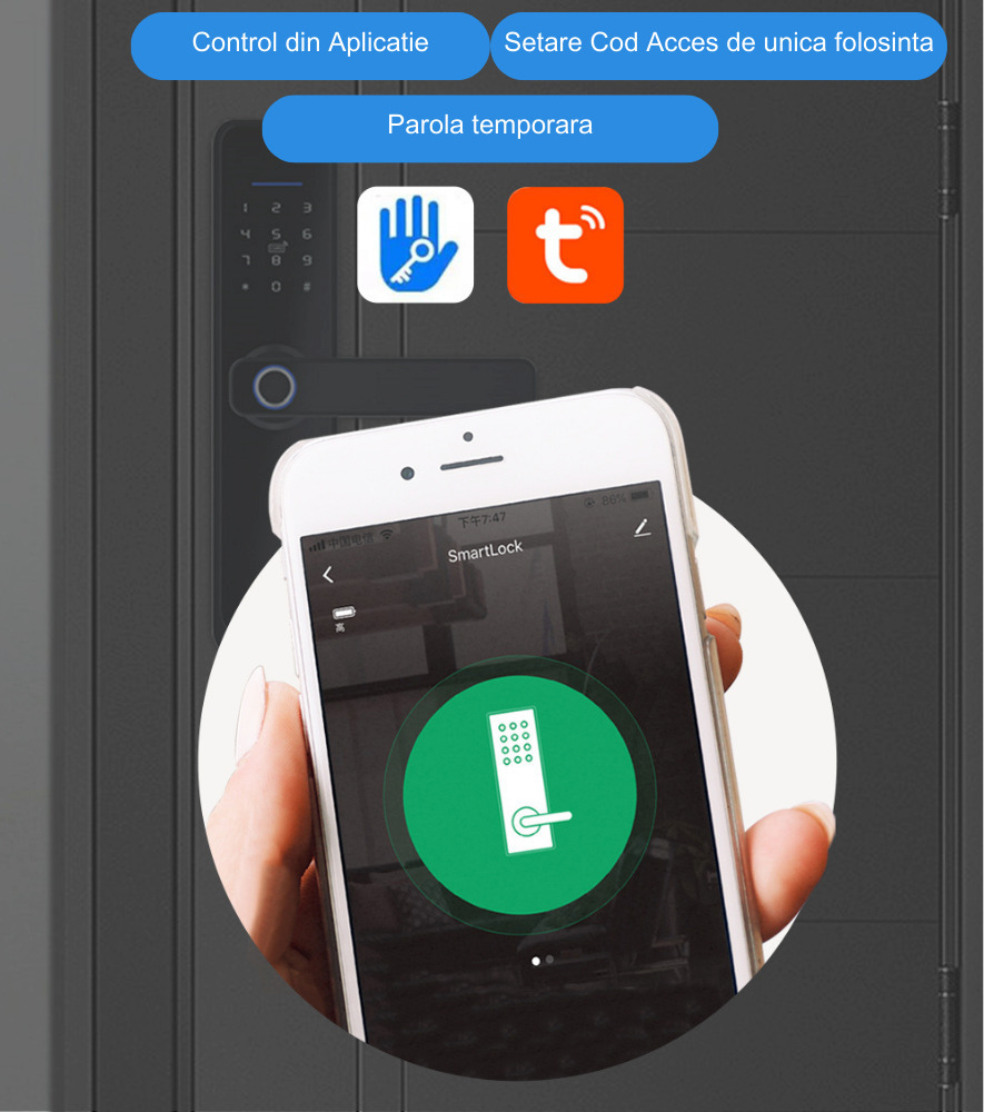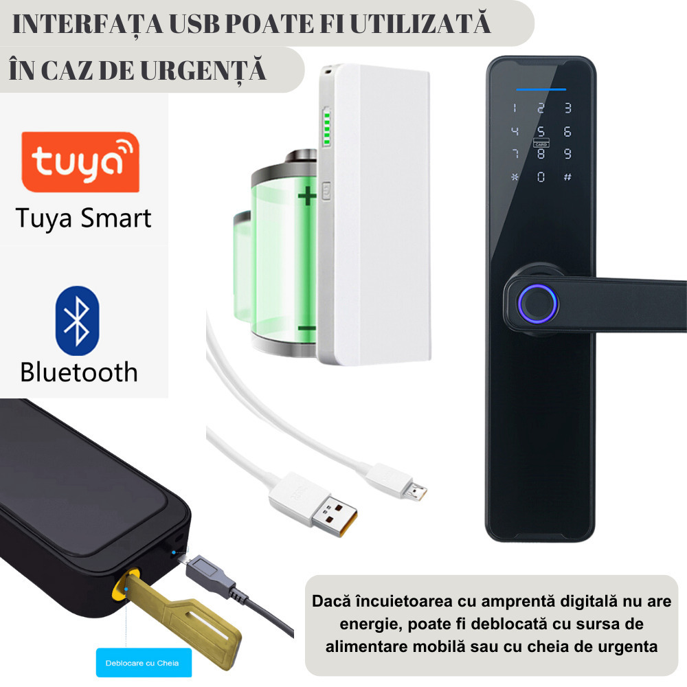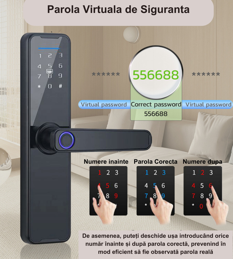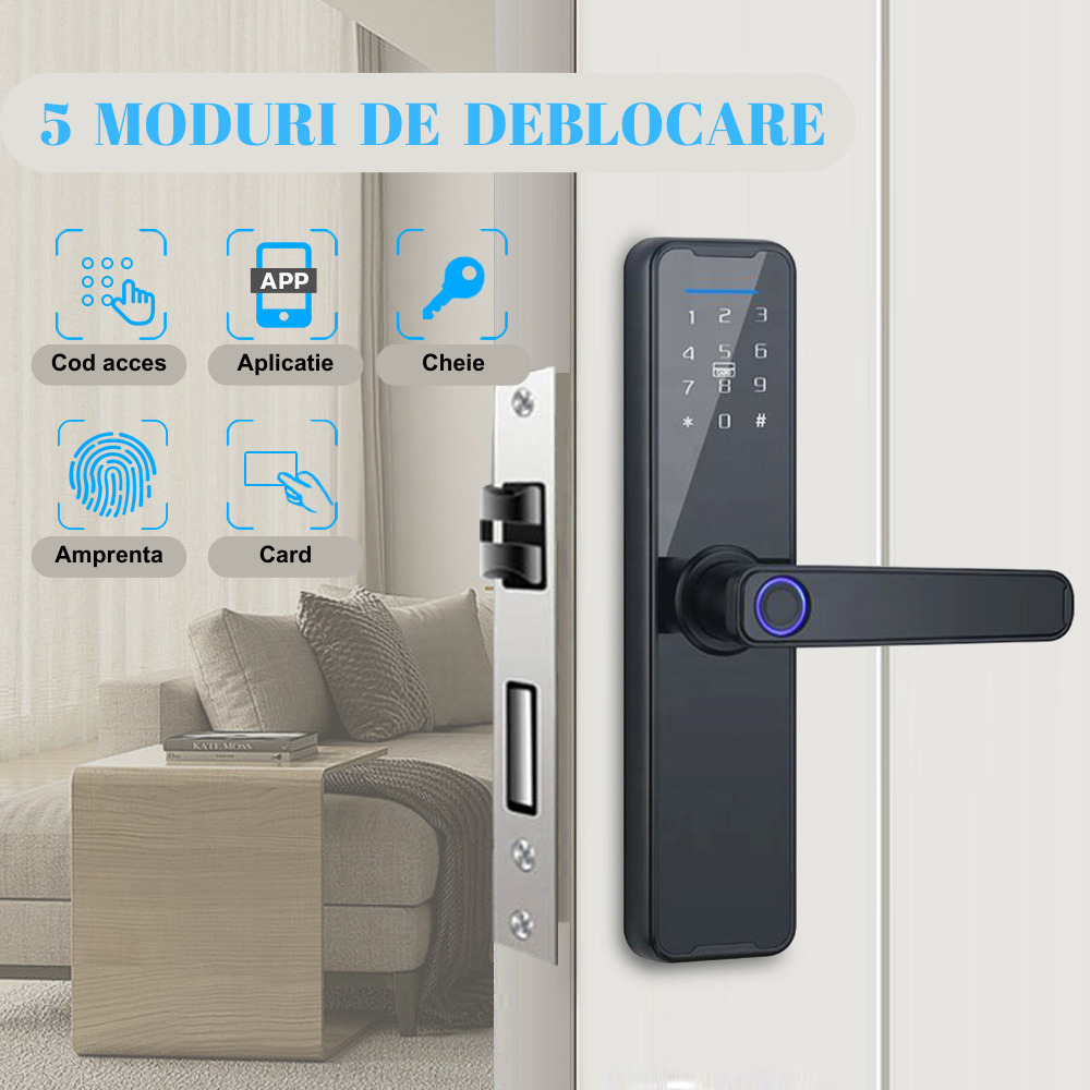 5 τρόποι ανοίγματος: Δακτυλικό αποτύπωμα, Κωδικός, Έξυπνη κάρτα, Φυσικό κλειδί και απομακρυσμένο άνοιγμα μέσω εφαρμογής Tuya Smart.