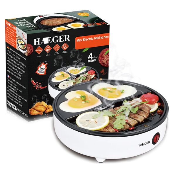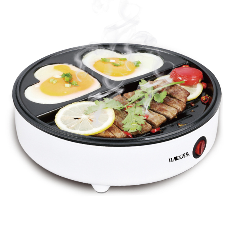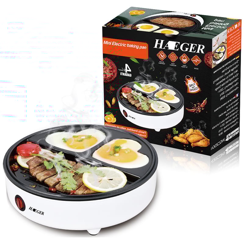 Έξυπνη Μικρή Ηλεκτρική Αντικολλητική Ψησταριά - Τηγάνι, 600W, με Πλάκες σε Σχήμα Καρδιάς, Ψηστιέρα Πρωινού Haeger σε Λευκό Χρώμα
