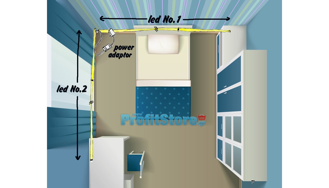 Στην συσκευασία θα βρείτε 2 ταινίες LED των 5 μέτρων. Κάθε μια από αυτές συνδέεται στον αντάπτορα ρεύματος. Ιδανική λύση για να φωτίσετε περιμετρικά των χώρο σας.