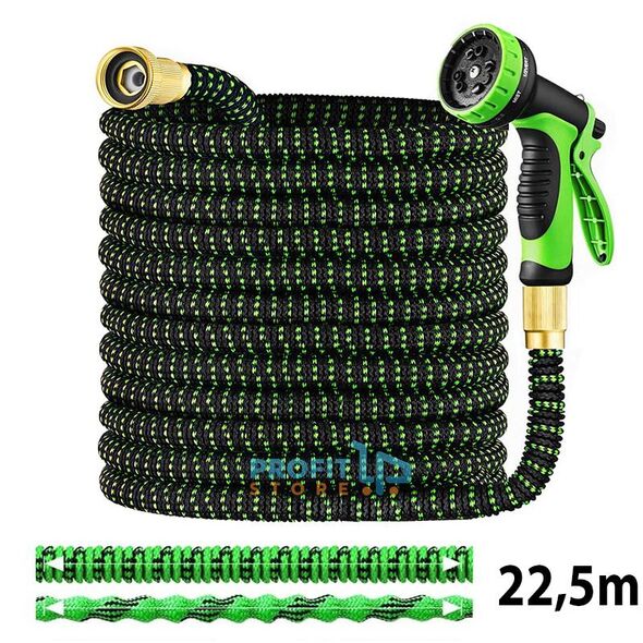Έξυπνο Ενισχυμένο Επεκτεινόμενο Λάστιχο Κήπου & Βεράντας 22.5m με 7 σε 1 Πιστόλι & Μεταλλικό Ρακόρ - Πράσινο - Μαύρο