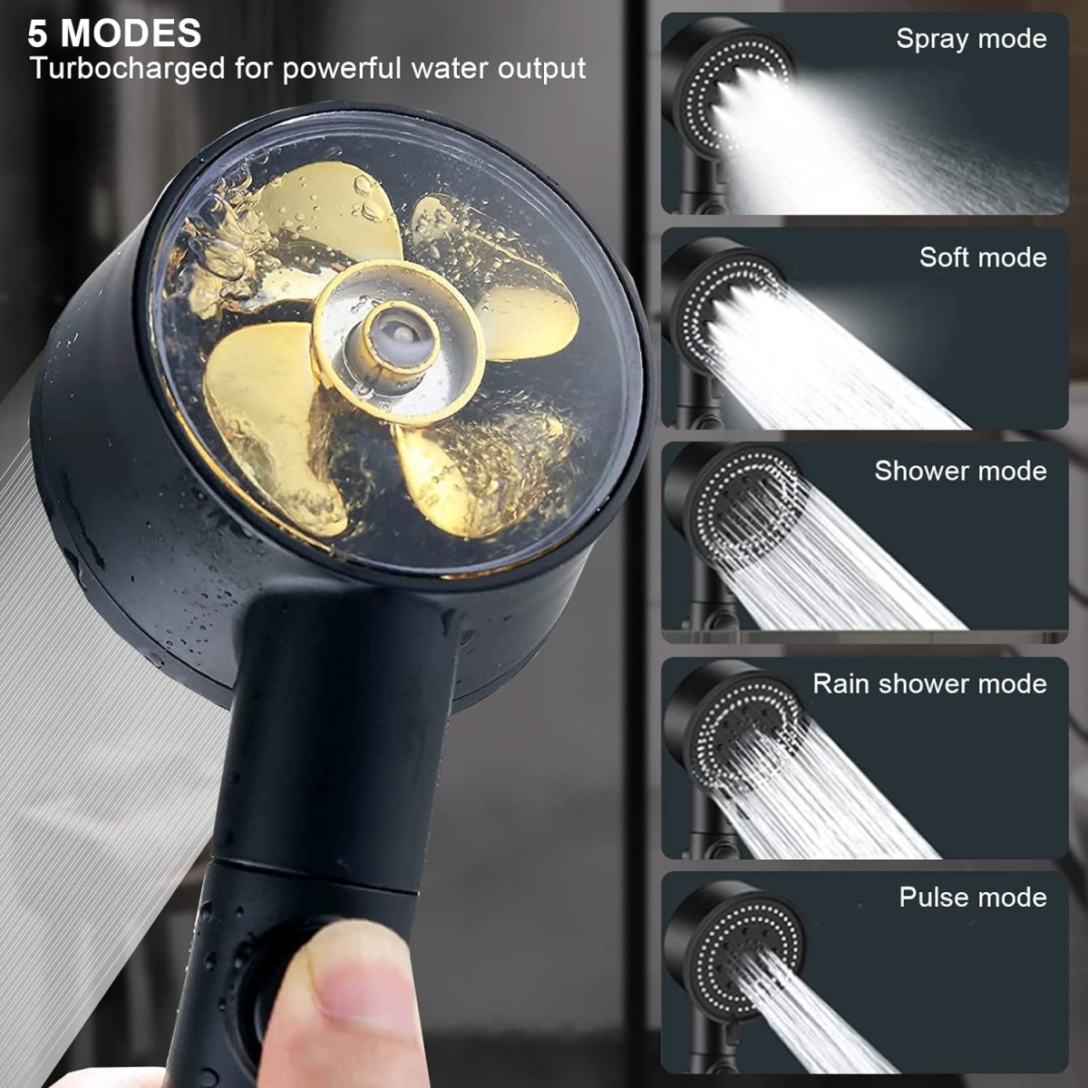 ✔️ 5 λειτουργίες ροής νερού - Επιλογή ανάμεσα σε διαφορετικά μοτίβα ψεκασμού για χαλάρωση, μασάζ ή καθημερινό ντους