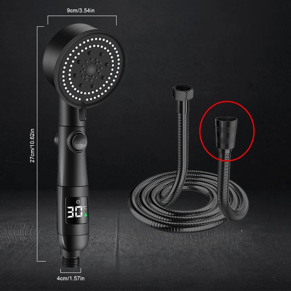 Έξυπνο Τηλέφωνο Ντουζ με Ψηφιακή Ένδειξη Θερμοκρασίας, 5 Λειτουργίες, Βάση & Σπιράλ