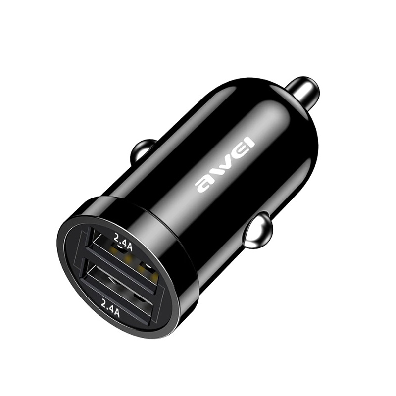 Έξυπνος Μίνι Γρήγορος Φορτιστής Αναπτήρα Αυτοκινήτου 2 USB AWEI