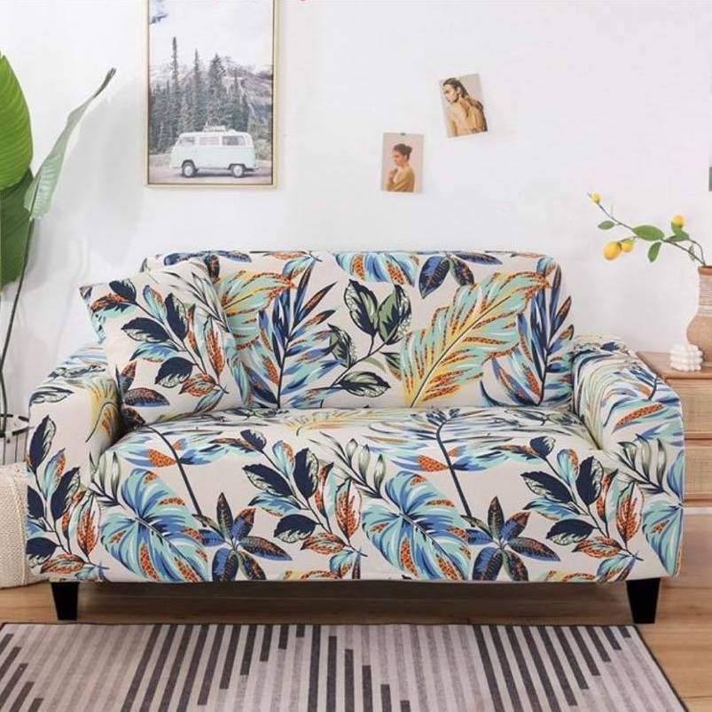 Ελαστικά Καλύμματα για Διθέσιο Καναπέ 140cm - 185cm - Elastic Sofa Cover Μπεζ Τροπικό Σχέδιο