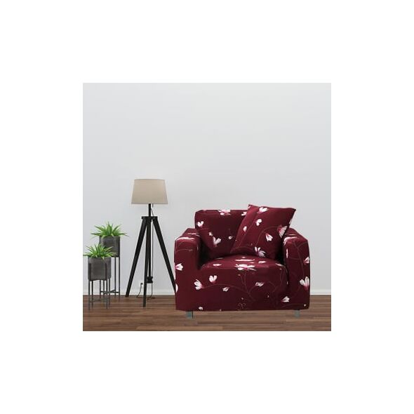 Ελαστικά Καλύμματα για Μονοθέσιο Καναπέ - Πολυθρόνα 90cm - 140cm - Elastic Sofa Cover Μπορντώ με Λουλούδια