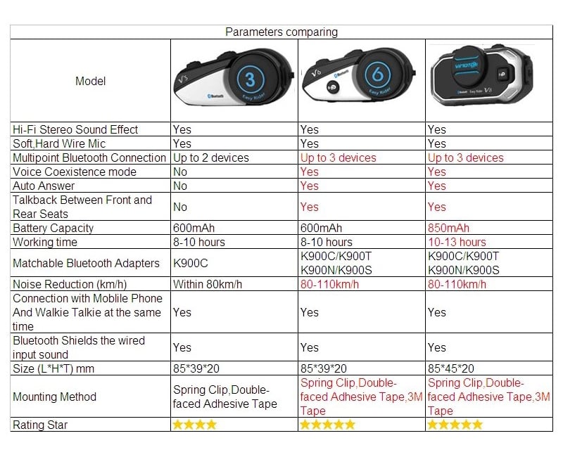 Ενδοεπικοινωνία Bluetooth Κράνους Μηχανής Vimoto V6 600mAh