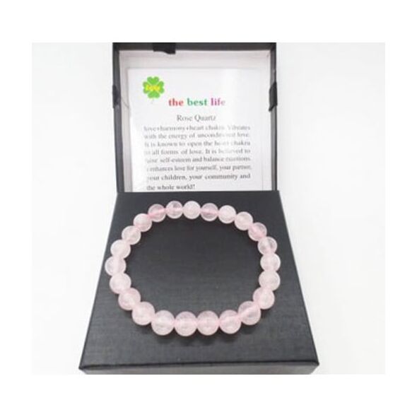 Κομψό ενεργειακό βραχιόλι με σφαιρίδια ροζ χαλαζία που ταιριάζει σε κάθε καρπό και χαρίζει στον κάτοχό του τις ξεχωριστές ιδιότητες του λίθου.