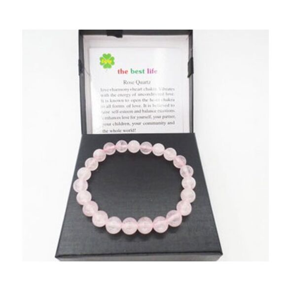 Ο ροδόχρωμος χαλαζίας (Rose Quartz) θεωρείται ο κρύσταλλος της καρδιάς. Φέρνει συναισθηματική ηρεμία και ευτυχία, τονώνει το αίσθημα της αγάπης, μειώνοντας το στρες και χαλαρώνοντας αυτόν που τον φοράει. Δημιουργεί το αίσθημα της αυτοεκτίμησης και θεραπεύει συναισθηματικές πληγές, απομακρύνοντας τη θλίψη.