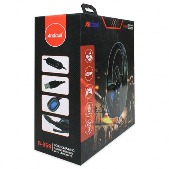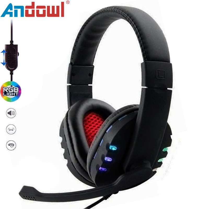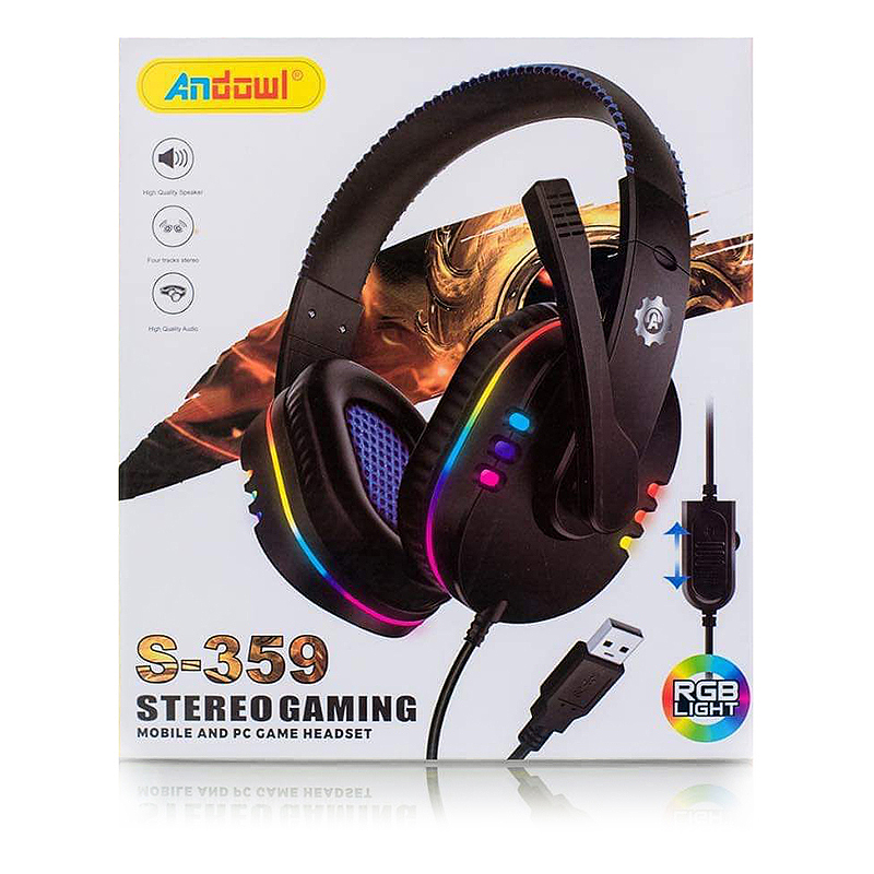 Ενσύρματα Gaming Ακουστικά USB με Μικρόφωνο Andowl®, RGB Φωτισμό, Over Ear Headset Για PC, PS, XBOX