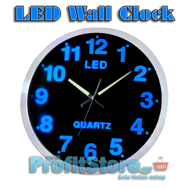 Εντυπωσιακό Ρολόι Τοίχου με Μπλε φωτισμό LED