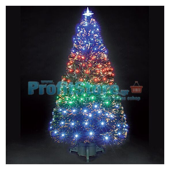 Χριστουγεννιάτικο δέντρο αυτοφωτιζόμενο ύψους 120cm με ενσωματωμένο φωτισμό από οπτικές ίνες που αλλάζουν χρώματα δημιουργώντας ένα εντυπωσιακό θέαμα. Επιπλέον διαθέτει και υπέρλαμπρα λαμπάκια LED, καθώς και αστέρι στην κορυφή, που εναλλάσσουν απίστευτα εφέ !